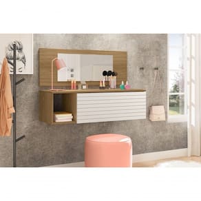 Penteadeira Camarim Suspensa Com Espelho E Gaveta Joy Branco/nature