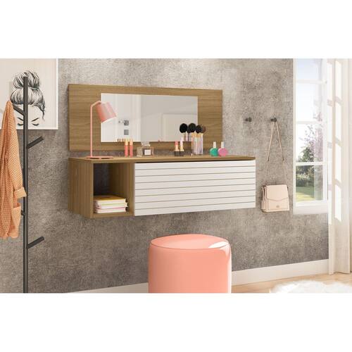 A Penteadeira Escrivaninha Suspensa Camarim Joy é a combinação perfeita de funcionalidade e elegância para o seu ambiente. Com um design moderno e sofisticado, ela traz a praticidade de um móvel que serve tanto como penteadeira quanto como escrivaninha, ideal para quem busca otimizar o espaço sem abrir mão do estilo. Sua estrutura suspensa oferece um visual clean e facilita a limpeza do ambiente. O painel de apoio e o espelho integrado trazem um toque de charme e completam a funcionalidade de um camarim, permitindo uma rotina mais prática e organizada. Além disso, ela conta com nichos e gavetas para armazenar seus produtos de beleza, acessórios ou materiais de escritório, deixando tudo ao alcance das mãos. Perfeita para quem deseja transformar o espaço com sofisticação e praticidade, a Penteadeira Escrivaninha Suspensa Camarim Joy é ideal para quartos, home offices ou qualquer ambiente que exija organização sem perder a beleza. - MDF e MDP; - Espessura 15mm; - Espelho; - Gaveta e nicho. - Altura: 60cm; - Largura: 90cm; - Profundidade: 33,5cm. Instruções de limpeza: limpar com pano úmido, detergente neutro ou aspirador de pó. Embalagem: Todos os nossos produtos são devidamente embalados e com total segurança. Montagem: Não montamos os produtos. O serviço de montagem deve ser contratado pelo cliente. Atenção: Não nos responsabilizamos, no ato da entrega, por desmontagens, subir escadas, elevadores ou transporte por guincho para apartamentos. Eventuais despesas são de responsabilidade do cliente. Confira as dimensões deste produto e certifique-se de que passará normalmente por supostos elevadores, portas, escadas e/ou corredores em forma da letra "S".
