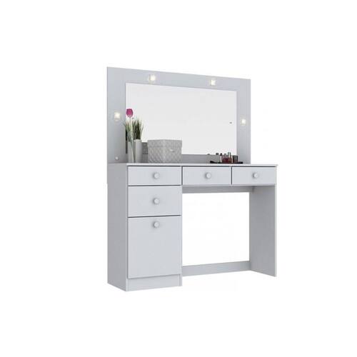 Penteadeira Chanel 1 Porta e 4 Gavetas c/ Espelho Branco - Henn