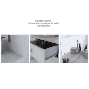 CARACTERÍSTICAS DE MÓVEIS Tipo de Estrutura do Móvel - MDF/MDP Tipo de Pintura - UV Tipo de Acabamento da Pintura - Alto Brilho/Fosca Características de móveis - Iluminação LED Tipo de puxador - ABS/PVC Quantidade de Gavetas - 4 Gavetas Diferenciais da Gaveta - c/ Corrediças Metálicas Quantidade de Portas - 1 Porta de Abrir Garantia - 3 meses