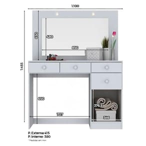 Cheia de requinte e modernidade a penteadeira Chanel é perfeita para você! Desenvolvida pela Henn com excelentes materiais, oferece muito mais qualidade e durabilidade do móvel. A Penteadeira conta com um design lindo e sofisticado que deixará o ambiente super elegante. Ela é ideal para satisfazer suas necessidades, é versátil, moderna e super funcional , cabe em qualquer ambiente desde quarto, closets e estúdios, onde você preferir. Conta também com um amplo espaço para melhor organizar maquiagens, perfumes e produtos de beleza. Confira as dimensões e aproveite!