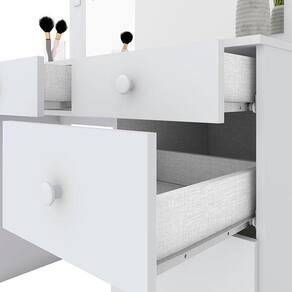 Cheia de requinte e modernidade a penteadeira Charme é perfeita para você! Desenvolvida pela Henn com excelentes materiais, oferece muito mais qualidade e durabilidade do móvel. A Penteadeira conta com um design lindo e sofisticado que deixará o ambiente super elegante. Ela é ideal para satisfazer suas necessidades, é versátil, moderna e super funcional , cabe em qualquer ambiente desde quarto, closets e estúdios, onde você preferir. Conta também com um amplo espaço para melhor organizar maquiagens, perfumes e produtos de beleza. Confira as dimensões e aproveite!