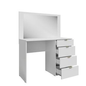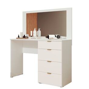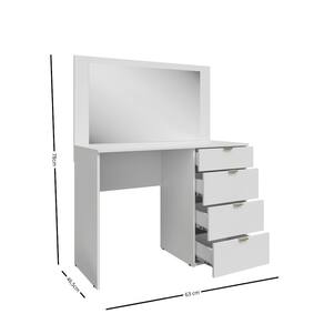 Penteadeira com Espelho 4 Gavetas Lis Moveis Sul A Penteadeira Lis e ideal para quem busca praticidade e elegancia no quarto. Produzida em 100 MDP com acabamento em pintura UV, garante maior durabilidade e resistencia. O movel conta com espelho amplo, 4 gavetas com corredicas telescopicas que proporcionam abertura suave e silenciosa, alem de puxadores plasticos que completam o design moderno.