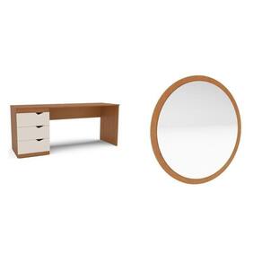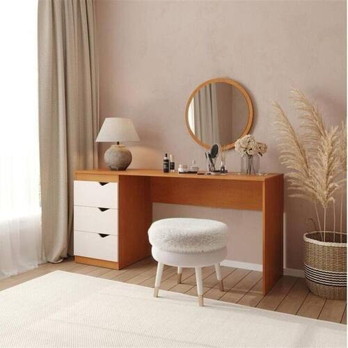 A penteadeira Porto com espelho redondo é o toque de charme e praticidade que faltava no seu cantinho de beleza. Com design moderno e delicado, ela vem com a mesa e o espelho redondo inclusos no kit, formando um conjunto perfeito para a sua rotina de autocuidado. Suas medidas de 163 cm de largura, 77 cm de altura e 52 cm de profundidade garantem espaço ideal para organizar maquiagens, perfumes e acessórios com elegância. É a escolha perfeita para quem ama um ambiente feminino, funcional e cheio de estilo. Altura do Conjunto: 77 cm Ambiente: null Ambiente Principal: Quarto Cor: Creme/Freijó Informação Complementar: 1x Espelho Redondo 59,5cm Móveis Freijó Largura: 60 cm Altura: 60 cm Peso: 3,8 kg Profundidade: 3 cm Necessita Montagem: Não