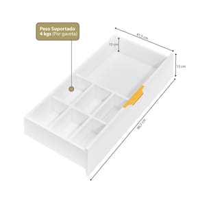 Os puxadores em perfil metálico garantem um visual clean e contemporâneo, enquanto as corrediças telescópicas metálicas proporcionam maior durabilidade e um deslizamento suave das gavetas. Perfeita para compor o quarto ou closet, a Penteadeira Vita é a escolha ideal para quem busca organização sem abrir mão do bom gosto. Acabamento da Gaveta: Melamínico Acompanha Banqueta: Não Altura dos Pés: 1,5 cm Ambiente Principal: Quarto codigo_ean: 7900288221452 Complexidade da Montagem: Média: pode ser montado por mais de uma pessoa e/ou necessite de maior conhecimento para montagem Cor: Branco Cor do Produto: Branco Cor Flex: Não Cor Interna: Branco Escala de Brilho: Semi-Brilho Escala de Brilho da Gaveta: Semi-Brilho Gaveta com Chave: Não Informações Complementares: - Fazer uma verificação mensal e realizar o reaperto dos parafusos do produto, caso necessário. Itens Inclusos: 1 Penteadeira, Kit Ferragens e Manual de Montagem Linha ou Coleção: Vita Manual de Montagem e Instalação: https://product-hub-prd.madeiramadeira.com.br/916731836/documents/7cd55da7-465c-45bb-a9d8-44f0f99c89f43162429390317562239941659.pdf Marca: Yescasa Material da Gaveta: MDP Material do Puxador da Gaveta: Metal Material dos Pés: Plástico Material Principal: MDP Montagem Flex: Não Necessita Montagem: Sim Origem do Produto: Nacional Pés Reguláveis: Não Peso: 39 kg Peso Máximo por Gaveta: 2 kg Possui iluminação: Não Possui Pés: 06 Possui Porta Objetos: Sim Possui Portas: Não Possui Prateleiras: Não Possui Rodízio: Não Possui Vidro: Não Recomendações de Uso, Manutenção e Limpeza: Limpar com pano umedecido, sem adição de produtos químicos. Sapatas Niveladoras: Não Sistema de Montagem: Parafusadeira, trena, chave Philips, parafusos, pregos, cantoneira e cavilhas. Suporta Até (kg): 25 kg Tampo Basculante: Não Tipo de Corrediça da Gaveta: Metálica Telescópica Tipo de Puxador da Gaveta: Externo
