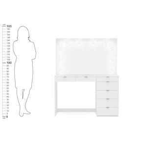 Sinta-se como uma estrela de cinema! A espetacular Penteadeira com Iluminação Camarim Ditália traz um estilo limpo e moderno para o seu quarto. Fabricada em madeira MDP UV com bordas melamínicas brancas, a penteadeira possui 7 gavetas onde você pode guardar tudo o que precisa para o seu dia a dia. De joias a documentos, seu ambiente ficará muito mais organizado e lindo. A base superior da mesa é ideal para guardar lembranças e recordações, trabalhar no seu notebook e divertir-se muito no espelho. Sinta-se em uma estrela!