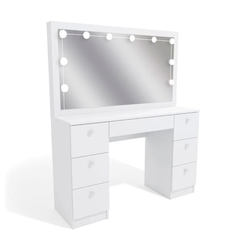 Produto: Penteadeira | Tonalidade: Branco | Cor: Branco | Altura: 142,50 | Largura: 118 | Comprimento: 39 | Peso: 48,21 | Material para Filtro: MDP | Estado de Origem: RS | Altura do Produto Com Embalagem: 14 | Comprimento do Produto Com Embalagem: 124 | Largura do Produto Com Embalagem: 77 | Peso do Produto Com Embalagem: 46 | Produto precisa de Montagem?: sim | Instruções/Cuidados: A Limpeza deve ser feita com um pano levemente umedecido com água. Não utilizar produtos abrasivos | Conteúdo da Embalagem: Penteadeira Ditália 7 Gavetas PE-80 Branco Com Kit Luz Camarim | Descrição do Tamanho: 117,7 x 142,5 x 39,2 | Garantia em Meses: 3 | Nome do Simples no Fornecedor: Ditalia