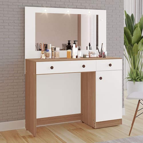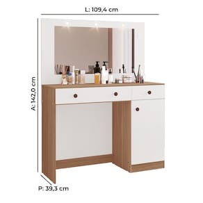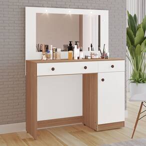 Conheça a Penteadeira Diva, o epítome do glamour e praticidade! Fabricada em 100% MDF de alta qualidade, garante durabilidade e sofisticação. Equipada com duas gavetas e um nicho, oferece amplo espaço de armazenamento para seus itens de beleza. Seu espelho adiciona um toque de elegância e funcionalidade ao espaço. Ideal para criar um cantinho de beleza digno de uma diva. Adquira agora e eleve sua rotina de cuidados pessoais!