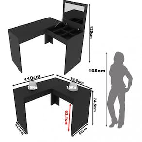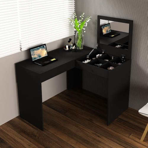 Penteadeira e Escrivaninha de Canto Espelho PE2021 Tecnomobili - Preto