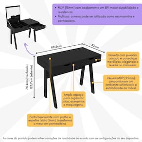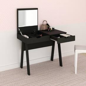 Penteadeira/Escrivaninha 90,5cm com Espelho e 1 Gaveta Multimóveis CR25278 - Preto