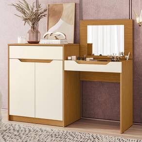 Essa Penteadeira Escrivaninha com Espelho Bent A02 Off/Cinamomo, da Mpozenato é a combinação perfeita entre funcionalidade, estilo e organização para o seu Quarto.
