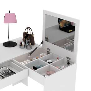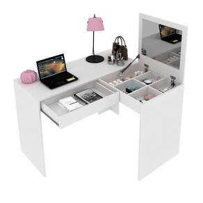 Penteadeira Escrivaninha Para Canto Com Espelho E 1 Gaveta Branco Penteadeira Escrivaninha para Canto com Espelho e 1 Gaveta Branco - Penteadeira de Canto com Espelho Organização e Elegância no seu Cantinho da Beleza