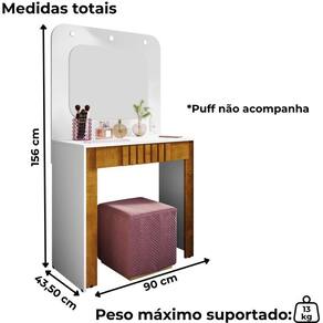 Cor: Multicolorido | Tonalidade: Multicolorido | Produto: Penteadeira | Largura: 90 cm Cor: Branco Naturalle