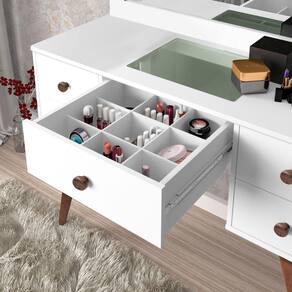 Gaveta central com porta objetos e vidro temperado 4 mm