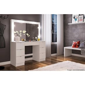 Penteadeira França c/ 6 Gavetas e Espelho Branco - Politorno Marca: Politorno