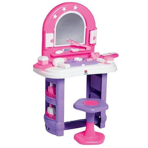 Penteadeira Miss Glamour Calesita 0320Para se produzir como a mamãeA penteadeira Miss Glamou tem banquinho e cores charmosas para se produzir O brinquedo vem com muitos acessórios de beleza: pente, escovinha, porta jóias, pulseira, presilhas, secador e uma pranchinha. O espelho fica em 3 posições.Informações Básicas: Marca:calesitaRef:320Ítens inclusos: 1 Penteadeira 1 Banco 1 Prancha 1 Secador 1 Escova 1 Pente 2 Presilhas 1 Pulseira 2 Frascos com tampa 2 Porta joias com tampa 1 Porta retrato 1 Tampa 1 Manual de InstruçõesDimensões da embalagem:51 x 25 x 59 cmCódigo de Barras: 7898664630397Idade recomendada: + de 3 anosComposição/material:plásticoImetro: CE-BRI/NNAC 02008-03AGarantia: Contra Defeitos de Fabricação Todas as informações divulgadas são de responsabilidade do fabricante/fornecedor.Imagens Meramente Ilustrativas.Observe atentamente a idade recomendada para o brinquedo. Pode conter partes pequenas que podem ser engolidas e perigosas.