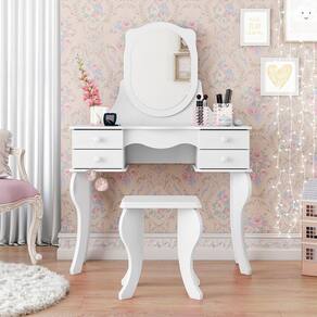 Queridinhas das meninas e mulheres, as penteadeiras geralmente roubam a cena e encantam. É hoje um dos móveis mais desejados para integrar a decoração com muito glamour. A penteadeira Princesa, vem com seu visual clássico contemporâneo tornando-a mais charmosa. Conta com 4 gavetas, espelho que trás com ela a funcionalidade de poder guardar de forma organizada produtos que vão fazer sobre sair a beleza feminina.