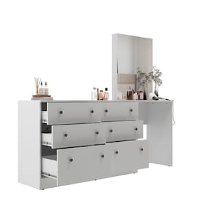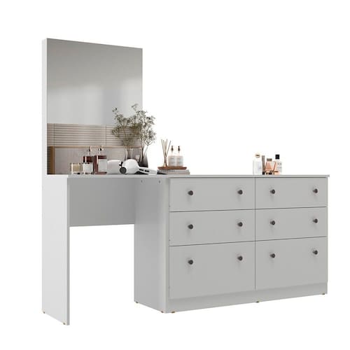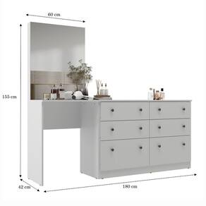 Com a Penteadeira Maitê Móveis Sul - 5527 seu quarto ficará ainda mais bonito. Feito em MDP FF, com revestimento em pintura UV, o produto possui muita durabilidade e resistência. Suas 06 gavetas são ideais para você guardar suas roupas e/ou objetos pessoais. As corrediças são metálicas e os seus 12 puxadores são plásticos. Seu espelho com vidro 3 mm deixa o móvel mais moderno e sofisticado. Não perca essa oportunidade e garanta já a sua!
