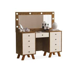 Essa Penteadeira conta com um design elegante e clássico, somando na decoração de seu quarto ou closet, com bastante espaço para organização pessoal. Conta com um largo espelho, gavetas laterais e uma gaveta central.