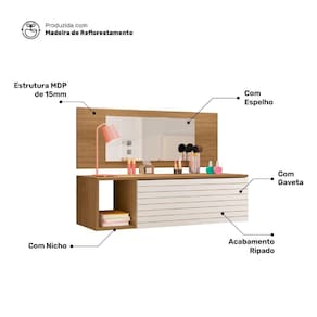 Descubra a elegância funcional da Penteadeira Suspensa Joy! Este móvel deslumbrante eleva instantaneamente o charme do seu dormitório, combinando um design moderno com detalhes irresistíveis, como a gaveta ripada e a robusta estrutura em MDP de 15 mm. Com sua gaveta espaçosa e corrediças metálicas, mantenha suas maquiagens organizadas e protegidas. Além disso, o nicho lateral oferece espaço adicional para exibir seus objetos decorativos favoritos, garantindo um ambiente que reflete seu estilo único. Transforme seus momentos de cuidado em uma experiência luxuosa com esta penteadeira deslumbrante!
