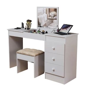 DIFERENCIAIS Produto 2 em 1: funciona como penteadeira ou escrivaninha Espelho amplo com borda clean 3 gavetas espaçosas para maquiagem, documentos e acessórios Banqueta estofada inclusa, confortável e resistente Grande área superior que acomoda notebook, organizadores, perfumes e itens pessoais Estrutura em MDP com acabamento branco liso Design moderno e versátil, ideal para quarto, home office ou closet Gavetas com puxadores arredondados para abrir com facilidade