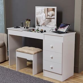 Produto 2 em 1: funciona como penteadeira ou escrivaninha