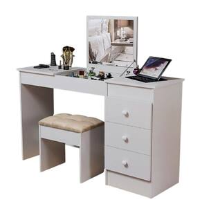 Penteadeira Moderna 2 Em 1 Para Maquiagem E Mesa De Estudo Com Banqueta - Branco