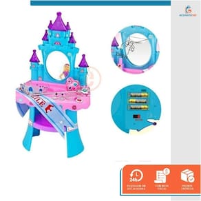 Penteadeira Musical Castelo Princesa Com Banquinho Baby Style A Penteadeira Musical com Banquinho Baby Style tem um lindo formato de castelo digno de uma princesa. Um camarim próprio com mais de 30 acessórios e jóias, e claro o mastro e uma coroa com detalhes apaixonantes para ficar ainda mais linda. Diferente de todas as penteadeiras, a penteadeira é divertida e educativa, conta com um lindo sistema de som e luz para dar um charme mais especial para a brincadeira. Tem um espelho perfeito para as princesas se admirarem. Suas cores são vibrantes e harmonizam entre si. Tudo pensado para o faz de conta estar à altura desta princesa, podendo montar e posicionar os adereços da forma que preferir. - Interação com a família;- Aprende brincando manualmente;- Desperta a adaptação social e interação;- Aprendizado pela repetição;- Expressão e comunicação;- Imaginação e criatividade;- Estimula a coordenação motora;- Incentiva e induz à autonomia da criança em montar e desmontar seu próprio brinquedo; - As peças podem ser guardadas no próprio compartimento. CARACTERÍSTICAS TÉCNICAS:Material: Plástico PPMedidas modo carrinho: 41cm altura x 36cm largura x 24cm comprimento Idade recomendada: A partir dos 3 anosProduto certificado pelo INMETRO 004181/2020Necessita de 3 pilhas AA Não incluso Peso: 1,1kgMarca: Baby StyleRef.: 668637