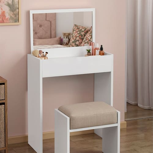 A Penteadeira Quimera com Espelho Compacta foi criada para quem deseja um cantinho especial de beleza mesmo em espaços reduzidos. Seu design moderno e funcional oferece o equilíbrio ideal entre estilo e praticidade, tornando o ambiente mais organizado e charmoso.
