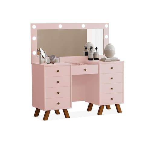 MATERIAL PARA FILTRO: mdf | ALTURA DO PRODUTO COM EMBALAGEM (CM): 43.3 | LARGURA DO PRODUTO (CM): 136.5 | INSTRUÇÕES/CUIDADOS: Limpar com pano macio e seco, não utilizar produtos abrasivos. | PESO PRODUTO COM EMBALAGEM (KG): 70 | COMPRIMENTO DO PRODUTO (CM): 45 | POSSUI GAVETAS: sim, 9 | MATERIAL PRINCIPAL: mdf | POSSUI BANQUETA: não | COR PREDOMINANTE: rosê | DESCRIÇÃO DO TAMANHO: 145 x 136.5 x 45 cm | CORES DO PRODUTO (FILTRO DE CORES): rosa | ALTURA DO PRODUTO (CM): 145 | PESO DO PRODUTO (KG): 70 | PRODUTO PRECISA DE MONTAGEM?: Sim, a montagem é simples mas sugerimos a contratação do serviço de montagem (para os CEPs em que o serviço está disponível) ou de algum experiente de sua preferência | MARCA: luapa | PRODUTO: penteadeira | POSSUI ILUMINAÇÃO: sim | CONTEÚDO DA EMBALAGEM: 1 penteadeira | LARGURA PRODUTO COM EMBALAGEM (CM): 68.5 | COMPRIMENTO PRODUTO COM EMBALAGEM (CM): 136.5 | ESTADO DE ORIGEM: sp