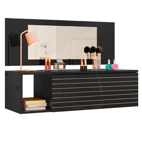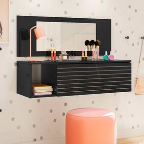 A Penteadeira Suspensa Joy, da Peternella, vai trazer estilo, elegância e organização para seu dormitório. Com um design moderno e seguindo tendências do mercado, como a gaveta com detalhe ripado e estrutura reforçada feita em MDP 15 mm com acabamento em BP, essa penteadeira com espelho deixará os seus momentos de cuidados muito mais agradáveis. Já as suas makes ficarão bem guardadas e protegidas na gaveta com corrediças metálicas e de quebra, você aproveita o nicho lateral para dispôr itens decorativos, deixando tudo com a sua cara.