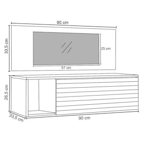 Espelho: 57 x 25 x 0,3 cm.