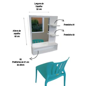 Inclui espelho. Produto é entregue montado Fácil instalação. Inclui parafusos + buchas para instalação do produto. Inclui manual de auxílio para instalação.