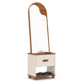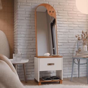 Penteadeira Toucador Miami Off Freijo Se você está em busca de um móvel que alie praticidade, elegância e charme, a Penteadeira com Espelho 1 Gaveta Branco é a escolha perfeita para você. Dimensões do produto montado: Altura: 148 cm Largura: 45 cm Profundidade: 33 cm Características: - Material MDP/MDF - Cor freijó/off white - Gaveta - Nicho - Pés - Espelho Itens Incluso: 01 Penteadeira. Kit completo para montagem. Manual de montagem. Observações: - Não nos responsabilizamos pela montagem do produto. - Sistema de Montagem: Parafusos, Cavilhas e Tampos. - É recomendado que a montagem seja feita por um profissional qualificado. - As imagens indicam uma sugestão de uso e são apenas ilustrativas, os objetos decorativos não estão inclusos. - Ao iniciar a montagem, forre o chão com o papelão das embalagens para proteger as peças de arranhões. Instruções e Cuidados: Limpar com pano seco, manter em lugar livre de umidade, ao abrigo de exposição direta ao sol. LARGURA DO PRODUTO (CM): 45 | ALTURA DO PRODUTO COM EMBALAGEM (CM): 8 | LARGURA PRODUTO COM EMBALAGEM (CM): 43 | PESO PRODUTO COM EMBALAGEM (KG): 14 | GARANTIA DO FABRICANTE: 3 | INSTRUÃ?Ã-ES/CUIDADOS: Limpar com pano macio e seco, nÃo utilizar produtos abrasivos. | CORES DO PRODUTO (FILTRO DE CORES): FREIJO/OFF WHITE | ALTURA DO PRODUTO (CM): 148 | ESTADO DE ORIGEM: SP | PRODUTO PRECISA DE MONTAGEM?: Sim, a montagem à facil mas sugerimos a contrataÃÃo de um montador profissional para a montagem do produto. NÃo nos responsabilizamos por danos causados no ato da montagem. | COMPRIMENTO PRODUTO COM EMBALAGEM (CM): 101 | PESO DO PRODUTO (KG): 14 | QUANTIDADES DE CAIXAS DE EMBALAGEM: 1 | COMPRIMENTO DO PRODUTO (CM): 33 | DESCRIÃ?Ã?O DO TAMANHO: 148X45X33 | MATERIAL PRINCIPAL: MDP/MDF | COR PREDOMINANTE: FREIJO/OFF WHITE | PRODUTO: PENTEADEIRA | MARCA: CASAH | QUANTIDADE DE GAVETAS: 1 | QUANTIDADE DE NICHOS: 1 | POSSUI ESPELHO: SIM | QUANTIDADE DE PRATELEIRAS: 1