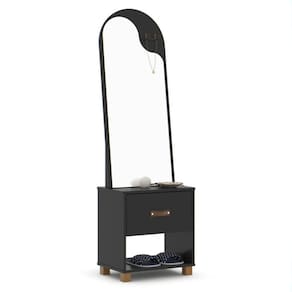 Penteadeira Toucador Miami Preto Se você está em busca de um móvel que alie praticidade, elegância e charme, a Penteadeira com Espelho 1 Gaveta Branco é a escolha perfeita para você. Dimensões do produto montado: Altura: 148 cm Largura: 45 cm Profundidade: 33 cm Características: - Material MDP/MDF - Cor preto - Gaveta - Nicho - Pés - Espelho Itens Incluso: 01 Penteadeira. Kit completo para montagem. Manual de montagem. Observações: - Não nos responsabilizamos pela montagem do produto. - Sistema de Montagem: Parafusos, Cavilhas e Tampos. - É recomendado que a montagem seja feita por um profissional qualificado. - As imagens indicam uma sugestão de uso e são apenas ilustrativas, os objetos decorativos não estão inclusos. - Ao iniciar a montagem, forre o chão com o papelão das embalagens para proteger as peças de arranhões. Instruções e Cuidados: Limpar com pano seco, manter em lugar livre de umidade, ao abrigo de exposição direta ao sol. GARANTIA DO FABRICANTE: 3 | QUANTIDADES DE CAIXAS DE EMBALAGEM: 1 | COR PREDOMINANTE: PRETO | CORES DO PRODUTO (FILTRO DE CORES): PRETO | DESCRIÃ?Ã?O DO TAMANHO: 148X45X33 | MATERIAL PRINCIPAL: MDP/MDF | ESTADO DE ORIGEM: SP | INSTRUÃ?Ã-ES/CUIDADOS: Limpar com pano macio e seco, nÃo utilizar produtos abrasivos. | PRODUTO PRECISA DE MONTAGEM?: Sim, a montagem à facil mas sugerimos a contrataÃÃo de um montador profissional para a montagem do produto. NÃo nos responsabilizamos por danos causados no ato da montagem. | ALTURA DO PRODUTO (CM): 148 | LARGURA DO PRODUTO (CM): 45 | COMPRIMENTO DO PRODUTO (CM): 33 | PESO DO PRODUTO (KG): 14 | ALTURA DO PRODUTO COM EMBALAGEM (CM): 8 | LARGURA PRODUTO COM EMBALAGEM (CM): 43 | COMPRIMENTO PRODUTO COM EMBALAGEM (CM): 101 | PESO PRODUTO COM EMBALAGEM (KG): 14 | PRODUTO: PENTEADEIRA | MARCA: CASAH | QUANTIDADE DE GAVETAS: 1 | QUANTIDADE DE NICHOS: 1 | POSSUI ESPELHO: SIM | QUANTIDADE DE PRATELEIRAS: 1