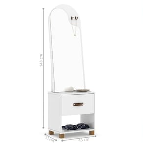 Penteadeira Toucador Monaco Branco Se você está em busca de um móvel que alie praticidade, elegância e charme, a Penteadeira com Espelho 1 Gaveta Branco é a escolha perfeita para você. Dimensões do produto montado: Altura: 148 cm Largura: 45 cm Profundidade: 33 cm Características: - Material MDP/MDF - Cor branco - Gaveta - Nicho - Pés - Espelho Itens Incluso: 01 Penteadeira. Kit completo para montagem. Manual de montagem. Observações: - Não nos responsabilizamos pela montagem do produto. - Sistema de Montagem: Parafusos, Cavilhas e Tampos. - É recomendado que a montagem seja feita por um profissional qualificado. - As imagens indicam uma sugestão de uso e são apenas ilustrativas, os objetos decorativos não estão inclusos. - Ao iniciar a montagem, forre o chão com o papelão das embalagens para proteger as peças de arranhões. Instruções e Cuidados: Limpar com pano seco, manter em lugar livre de umidade, ao abrigo de exposição direta ao sol. GARANTIA DO FABRICANTE: 3 | QUANTIDADES DE CAIXAS DE EMBALAGEM: 1 | COR PREDOMINANTE: BRANCO | CORES DO PRODUTO (FILTRO DE CORES): BRANCO | DESCRIÃ?Ã?O DO TAMANHO: 148X45X33 | MATERIAL PRINCIPAL: MDP/MDF | ESTADO DE ORIGEM: SP | INSTRUÃ?Ã-ES/CUIDADOS: Limpar com pano macio e seco, nÃo utilizar produtos abrasivos. | PRODUTO PRECISA DE MONTAGEM?: Sim, a montagem à facil mas sugerimos a contrataÃÃo de um montador profissional para a montagem do produto. NÃo nos responsabilizamos por danos causados no ato da montagem. | ALTURA DO PRODUTO (CM): 148 | LARGURA DO PRODUTO (CM): 45 | COMPRIMENTO DO PRODUTO (CM): 33 | PESO DO PRODUTO (KG): 14 | ALTURA DO PRODUTO COM EMBALAGEM (CM): 8 | LARGURA PRODUTO COM EMBALAGEM (CM): 43 | COMPRIMENTO PRODUTO COM EMBALAGEM (CM): 101 | PESO PRODUTO COM EMBALAGEM (KG): 14 | PRODUTO: PENTEADEIRA | MARCA: CASAH | QUANTIDADE DE GAVETAS: 1 | QUANTIDADE DE NICHOS: 1 | POSSUI ESPELHO: SIM | QUANTIDADE DE PRATELEIRAS: 1