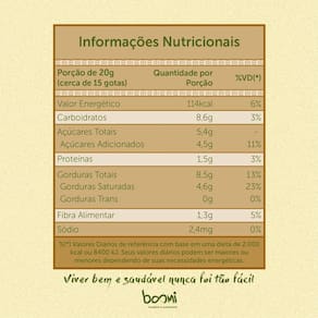 Pepitas de chocolate bocadin com morango cookoa 120g As pepitas de chocolate bocadin com morango cookoa levam o contraste do chocolate 80% cacau junto à suavidade do chocolate branco cremoso e a acidez sutil do morango liofilizado. As pepitas de chocolate bocadin com morango cookoa são perfeitas para quem busca sabor, saúde e uma pitada de sofisticação. Ingredientes: parte branca: de cacau, açúcar demerara, castanha-de-caju, coco, polvilho de mandioca, extratos de baunilha e alecrim, sal integral. Parte intensa 80%: nibs de cacau, açúcar de coco e de cacau. Morango liofilizado: morango. Não contém glúten. Alérgicos: contém castanha de caju. Sobre a marca: o amor pela nutrição e pelo cacau foi o que motivou nossa chocolatier e seu companheiro a desenvolver uma linha de chocolates nutritivos e inclusivos, isto é, alimento pra todos. Nossa arte é transformar amêndoas de cacau fino e fresco em alimentos de alta qualidade sensorial. Nosso foco em manter o valor nutricional e principalmente, em não adicionar aos chocolates nenhum tipo de alergênico trigo, leite, soja, amendoim... ou aditivos químicos que mal sabemos pronunciar os nomes Através do método bean-to-bar da amêndoa a barra produzimos tudo aos mínimos detalhes preservando as ricas propriedades do cacau e dos insumos que serão combinados a suas nobres amêndoas. Sobre a boomi: a boomi é um mercado online com produtos saudáveis e sustentáveis, que fazem bem à saúde e ao planeta. São mais de 3.500 produtos de 150 pequenas marcas para você Nascemos pequenos, mas com um propósito gigante: conectar pessoas a produtos acessíveis que tragam benefícios para a saúde, para o planeta e para a sociedade. Para isso, buscamos ofertar produtos de pequenos agricultores e pequenas empresas em um mundo cada vez mais veloz e que busca mais produtividade. Vamos sempre buscar levar o melhor para você Nosso propósito é conectar alimentos saudáveis e produtos naturais e sustentáveis a pessoas preocupadas com a sua saúde e com a saúde do planeta. Com preço justo, comodidade e informações confiáveis. Curadoria: nossos produtos são criteriosamente validados pela nossa curadoria de produtos saudáveis, que busca produtores e empresas que compartilham do nosso alto padrão de qualidade. Da enorme lista de ingredientes banidos à preocupação do bem estar animal, desde o primeiro dia seguimos fieis aos nossos valores, trabalhando com transparência e práticas sustentáveis. Vendemos apenas produtos que admiramos e que nos orgulha.