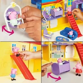 A chegada da irmãzinha de Peppa, Evie, significa que a família Porquinho está crescendo — e a casa deles também! Com o conjunto de brincadeiras da Casa Grande da Peppa, as crianças podem recriar cenas favoritas do programa e imaginar novas aventuras com Peppa, George e a Bebê Evie. Esta grande casa de 2 andares e 7 cômodos se abre para mais de 2,5 pés (80 cm) de largura e está repleta de acessórios que as crianças podem usar para decorar e arrumar a casa como quiserem, incluindo uma cama loft colorida para Peppa, uma cama de dinossauro para George, uma banheira e um sofá! A Bebê Evie pode brincar em seu balancinho, sentar em sua cadeira alta ou tirar uma soneca de faz de conta em seu bercinho. Este conjunto de brinquedos da Peppa Pig inclui as figuras da Bebê Evie, George e Peppa; procure por conjuntos adicionais de figuras inspirados em personagens favoritos da Peppa Pig (vendidos separadamente, sujeito à disponibilidade) para adicionar à diversão em família! Brinquedos de educação infantil como a Casa Grande da Peppa são ótimos presentes para meninas e meninos a partir de 3 anos.