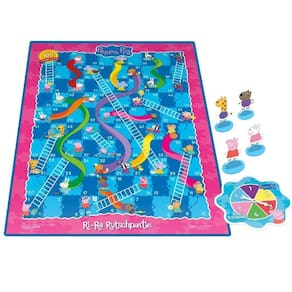 Muita diversão com Peppa Pig e seus amigos Esta versão do jogo de tabuleiro Chutes and Ladders, da Hasbro, é inspirada na porquinha mais conhecida da TV. É um jogo divertido para crianças a partir dos 3 anos. É uma aventura de subir e escorregar com os personagens Peppa Pig, Gerald Girafa, Susie Ovelha e Danny Cão. A linda arte do tabuleiro traz além da Peppa seus amigos como Rebecca Coelho e muito mais. É uma ótima opção para crianças que ainda não aprenderam a ler e os números no tabuleiro são uma ótima oportunidade para praticar. É um jogo rápido para brincar em família ou com amigos. Imagens ilustrativas.
