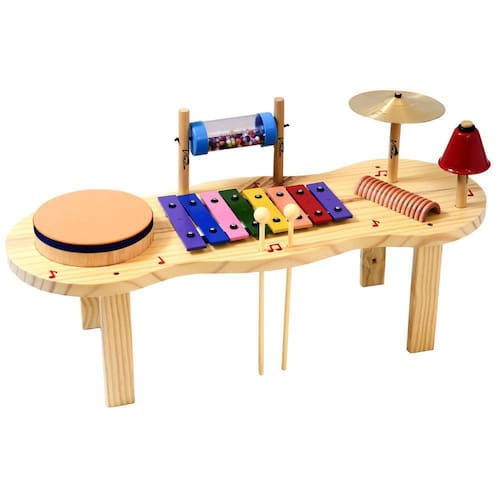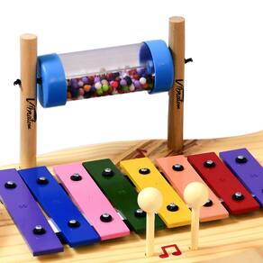 Pequena Percussão Baby - Madeira - P3696 - Vibratom Multi-instrumento para alegria da criança - 01 Metalofone 8 teclas coloridas afinadas - 01 Prato - 01 reco-reco - 01 sininho - 01 ganza cristal com bolinhas coloridas - 01 tambor com pele em madeira/EVA - 02 baquetas MEDIDAS APROXIMADAS - altura: 18 cm - largura: 24cm - comprimento: 66cm Prepare suas crianças para o futuro com instrumentos musicais. Brinquedo pedagógico. Brinquedo educativo. Idade indicada: a partir de 3 anos. Utilizamos materiais seguros, duráveis e ecológicos. Dimensões aproximadas do produto: C x A x L 69 x 26 x 10 cm. Prazo de garantia: 03 meses de garantia legal. Observe atentamente a idade recomendada para o brinquedo. Pode conter partes pequenas que podem ser engolidas e perigosas. Fotos ilustrativas as cores e modelos podem sofrer alterações sem aviso prévio. A Vibratom tem uma história de mais de 50 anos com o desenvolvimento das crianças através da musicalização que a estimula à socialização e à evolução cultural e intelectual. Essa é uma responsabilidade que nos motiva a buscar a excelência da qualidade de nossos produtos desde a seleção das matérias primas até o processo de produção, que envolve funcionários qualificados a fim de garantir o melhor aproveitamento dos alunos e professores.
