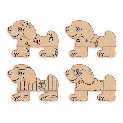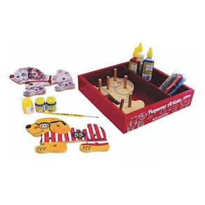 Pequeno Artista Carimbras é um brinquedo educativo de arte e desenho. Para orientar o processo artístico, cada cachorrinho vem com um contorno diferente, assim, a criança utiliza estes moldes de madeira para fazer a sua criação.