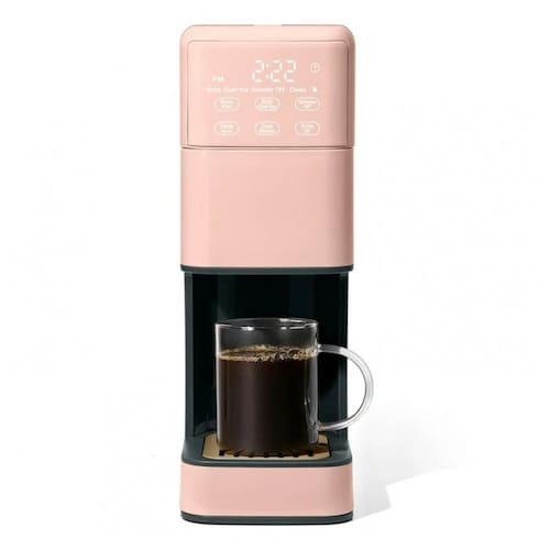 A Perfect Grind Rose é uma máquina de café drip single serve com moedor burr integrado que processa grãos inteiros para preparos de 177 a 473 ml (6-16 oz), com opções de força regular, bold ou over ice, e reservatório removível de 1,89 L para múltiplos preparos diários. Suporta café quente ou gelado via display touch programável com timer para auto-brew matinal, eliminando necessidade de pods descartáveis.