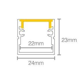 Perfil De Sobrepor Para Fita Led Taschibra Apex 24 Com 1 Metro Dimensões AxLxP (mm): 23x1000x24 Garantia: 90 dias junto ao fabricante Material: Alumínio e plástico Led Incluso: Não Instalação: SobreporAcabamento/Tampa: Não Itens Inclusos 1 Perfil