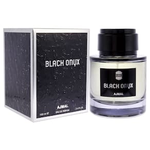Spray EDP unissex Ajmal Black Onyx de 3,4 onças - Lançado pela casa de design Ajmal - Canela, cardamomo, rosa, oud, mirra, almíscar branco, âmbar e patchouli - É adequado para todos os tipos de pele - É uma fragrância de longa duração - Mantém você refrescante o dia todo.