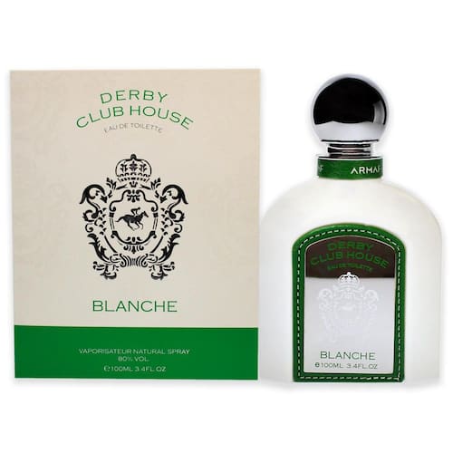 Spray masculino Armaf Derby Club House Blanche EDT de 3,4 onças — Lançado pela casa de design Armaf — Notas de água, laranja, bergamota, groselha preta, chá verde, gálbano, sândalo e almíscar. - É uma fragrância de longa duração - Mantém você refrescante o dia todo - É recomendada para uso casual.