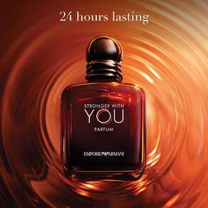 - A icônica garrafa de vidro Stronger With You segue linhas fortes e curvas que lembram os ombros masculinos. É coberto com o boné cinza metálico característico.