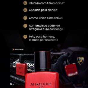 Diferenciais do Perfume de Feromônios Masculino Attracione Men 25ml Tecnologia de Feromônios: Formulado com substâncias que elevam a percepção pessoal e potencializam a confiança. Fragrância Versátil: Adequado para diversas ocasiões, seja no ambiente de trabalho, eventos sociais ou momentos especiais.