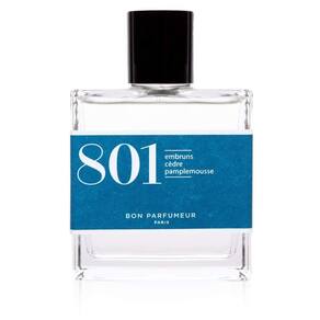 O 801 é um cítrico aquático cuja onda é transparente. As notas de toranja e limão amplificam o frescor marinho. As facetas arejadas se associam bem aos toques picantes e aromáticos, dando à composição todo seu caráter. Sua esteira pulverulenta é preenchida com madeira seca e almíscar branco.