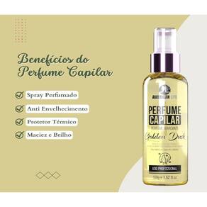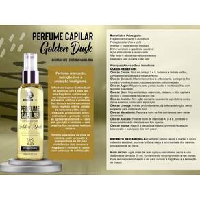 Perfume capilar golden dusk american life essência manga rosa. O perfume capilar golden dusk da american life é mais que uma fragrância sofisticada: é um tratamento leve com ação hidratante, antifrizz e protetora. Sua fórmula exclusiva combina óleos vegetais nobres, extrato de camomila e filtro solar uva e uvb, promovendo brilho, sedosidade e proteção contra as agressões externas como sol, poluição e umidade sem pesar os fios ou deixar resíduos oleosos. Perfeito para todos os tipos de cabelos, pode ser a qualquer hora do dia para revitalizar os fios, renovar a fragrância e proteger o cabelo com um toque de sofisticação. Benefícios principais Fragrância marcante e duradoura Proteção solar uva e uvb Antifrizz e toque sedoso imediato Brilho luminoso e aparência saudável Ação antioxidante e revitalizante Não pesa e não deixa resíduos oleosos Ideal para usar durante o dia todo Óleos vegetais: Óleo de canola: rico em ômega 3 e 6, fortalece e hidrata os fios, combatendo a quebra e o ressecamento. Óleo de girassol: altamente nutritivo e antioxidante, protege os fios contra o envelhecimento precoce e devolve brilho imediato. Óleo de argan: regenera, sela pontas duplas e controla o frizz com leveza e suavidade. Óleo de ojon: rico em lipídeos essenciais, restaura a fibra capilar e devolve a elasticidade natural dos fios. Óleo de absinto: tem ação , suavizante e protetora contra danos externos, como calor e poluição. Óleo de linhaça: hidrata profundamente, dá brilho e definição, sendo excelente para controle do frizz. Óleo de macadâmia: repara e nutre os fios com leveza, sem deixar oleosidade. Óleo de abacate: potente fonte de vitaminas a, d e e, combate o ressecamento e dá vitalidade aos fios opacos. Óleo de jojoba: regula a oleosidade natural, promove hidratação balanceada e suaviza os fios sem pesar. Extrato de camomila: natural, ajuda a manter o couro cabeludo saudável, promove brilho e realça a luminosidade dos cabelos, principalmente os claros. Modo de uso Agite antes de usar. Aplique nos cabelos secos a uma distância de cerca de 20 cm, concentrando no comprimento e nas pontas. Pode ser reaplicado durante o dia para renovar a fragrância e a sensação de frescor. Anvisa: 25351357288202418