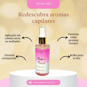 Perfume capilar secrets hair 60ml-p/ qualquer tipo de cabelo Aroma: velvet Perfume capilar secrets hair - sofisticação para seus fios O perfume capilar secrets hair oferece a combinação perfeita entre fragrância marcante e cuidados para o cabelo. Inspirado nas mais renomadas fragrâncias do mercado, esse produto transforma seus fios com um aroma suave e duradouro, mantendo-os perfumados e refrescantes o dia todo. Além de proporcionar um perfume irresistível, o produto também oferece proteção térmica, hidratação e brilho intenso. O que você irá receber 01 perfume capilar secrets hair 60ml Benefícios - perfume duradouro e delicioso - hidratação profunda para seus fios - proteção térmica contra ferramentas de calor - brilho intenso e natural Características - versatilidade de uso: pode ser em cabelos secos ou úmidos, adaptando-se à sua rotina. - fórmula nutritiva: enriquecido com ingredientes que nutrem e hidratam os fios. - perfume marcante: fragrância inspirada nas mais renomadas do mercado, garantindo frescor e sofisticação. - proteção contra danos: ação de proteção térmica contra danos causados por secadores e chapinhas. Marca: Não Informado